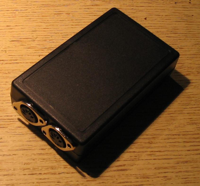 Am vergangenen Sonntagstreffen im Entropia habe ich endlich nach über einem Jahr den MIDI-USB-Adapter in eine schönes, kleines Kästchen eingebaut. Bin stolz auf mich, zudem das gesamte Innenleben samt ATMEL-Code, Schaltkreisentwurf und Platinenlayout von Manuel programmiert, entworfen und gebastelt wurde. (Dazu in seinem Weblog: Usbtöne und Dämliche Hardware.)